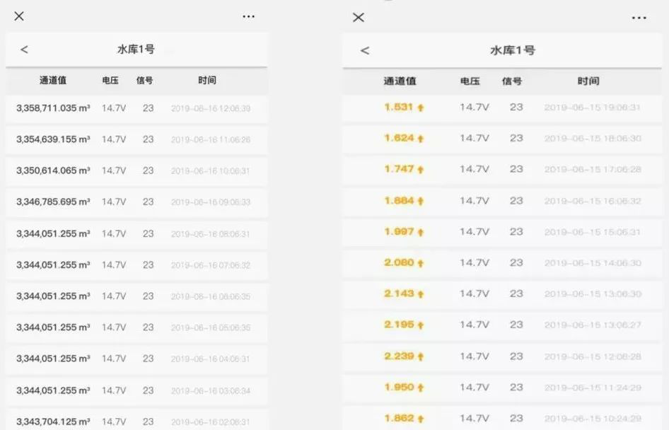 監(jiān)測點(diǎn)兼具防雷、防水等特性,蓄電池與太陽能的配合供電,可以解決各種現(xiàn)場供電問題。操作人員可以通過電腦或手機(jī)查詢數(shù)據(jù),實(shí)時(shí)監(jiān)測液位和流量的變化情況,手機(jī)端監(jiān)控如圖所示:
