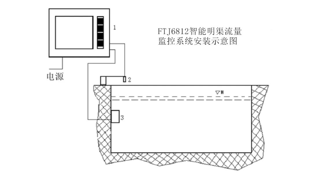 明渠流量計(jì)由流量顯示儀、電磁流速計(jì)、超聲液位計(jì)三部分構(gòu)成。電磁流速計(jì)安裝于渠道中,將水流速度轉(zhuǎn)換為電信號通過電纜傳送給顯示儀。超聲液位計(jì)安裝在流速計(jì)附近的渠道上方,測量渠道橫斷面上方的水位深度值,通過 4~20mA 電流信號形式傳送給顯示儀。顯示儀將流速信號、水位信號以及各種渠道參數(shù)通過運(yùn)算得到過水?dāng)嗝娴乃髁俊?/p>