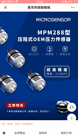 此次商城上線,我們首發(fā)上架了MPM288型壓力傳感器。