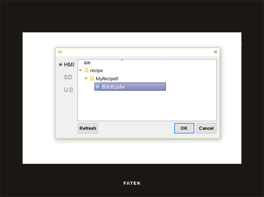 4.U盤下載PLC程序。如果使用C3/P5系列觸摸屏和永宏PLC通訊,那么您可以直接將PLC程序拷貝到U盤,然后將U盤插在觸摸屏上,可以將PLC程序直接下載到PLC并讓程序執(zhí)行起來。