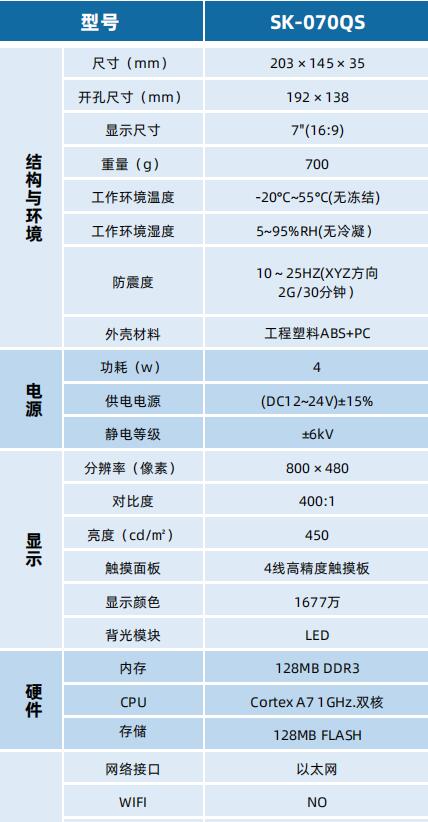 SK-070QS 顯控人機界面 深圳顯控觸摸屏