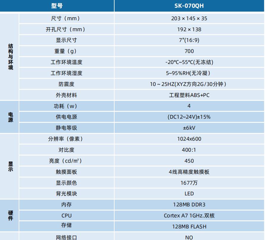 SK-070QH 顯控人機界面 顯控觸摸屏