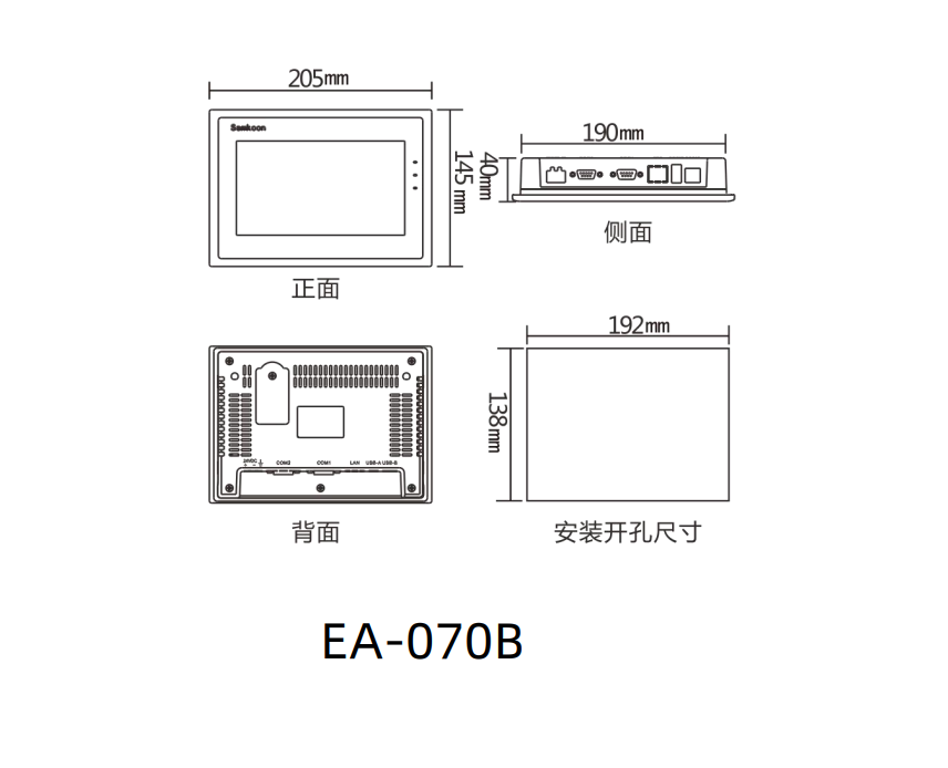 EA-070B 外觀尺寸圖 開孔尺寸