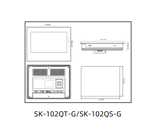 SK-102QT-G/SK-102QS-G 顯控觸摸屏 產品尺寸