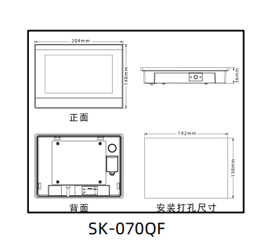 SK-070QF 顯控觸摸屏 產品尺寸圖